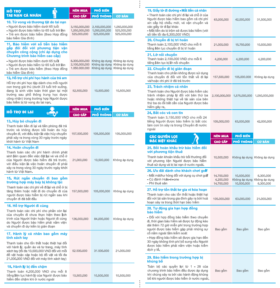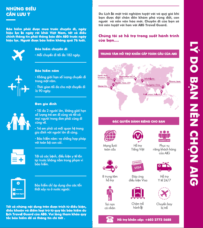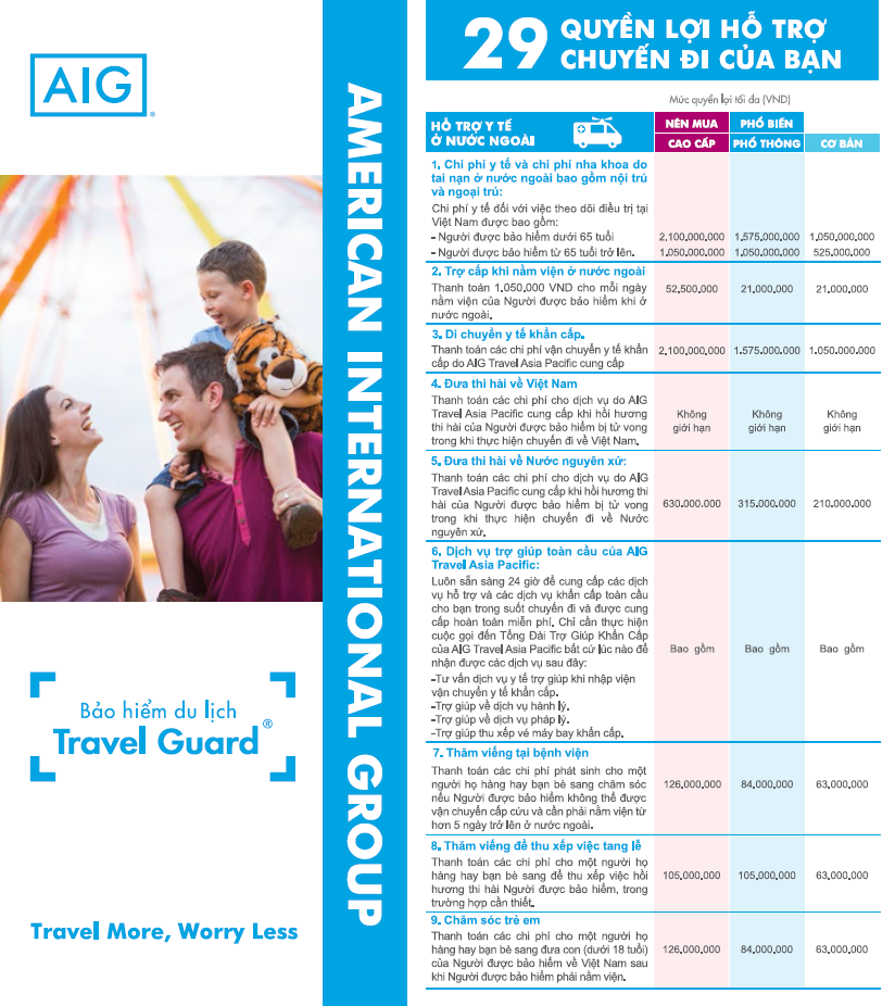 Bạn sẽ an tâm với 29 quyền lợi rất minh bạch hỗ trợ chuyến đi của bạn, để được đi nhiều hơn mà bớt lo hơn, hãy sử dụng dịch vụ Bảo hiểm du lịch AIG Travel Guard.