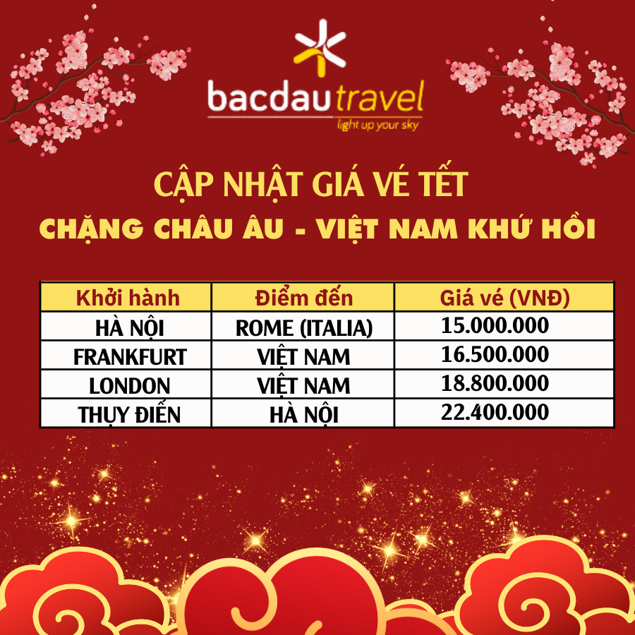 Quý khách hàng có nhu cầu đặt vé khứ hồi Tết chặng châu Âu - Việt Nam vui lòng liên hệ Bắc Đẩu Travel để được tư vấn hành trình và giá vé ưu đãi nhất.