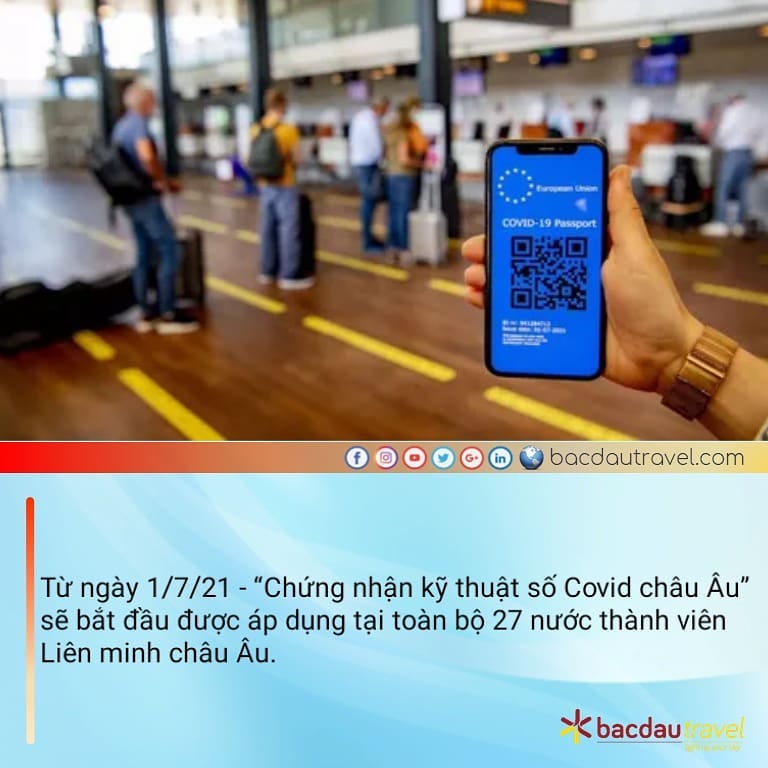 Kể từ ngày 1/7, các hành khách tại châu Âu sẽ phải xuất trình giấy chứng nhận kỹ thuật số Covid châu Âu để đi qua biên giới các nước trong Liên minh mà không phải chịu sự ràng buộc của các biện pháp hạn chế.