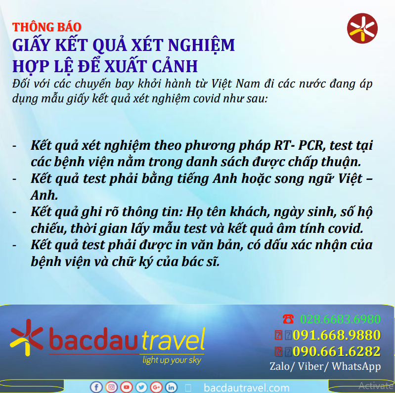 Kết quả xét nghiệm hợp chuẩn để xuất cảnh