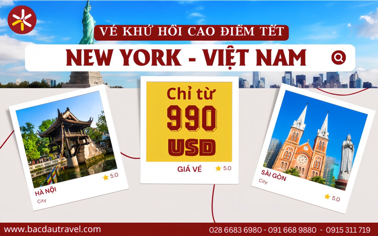 Quý khách đặt vé New York về Việt Nam cao điểm tết vui lòng liên hệ Bắc Đẩu Travel để được tư vấn và hỗ trợ, chúc quý khách tận hưởng trọn vẹn không gian ấm áp sum họp bên gia đình và người thân
